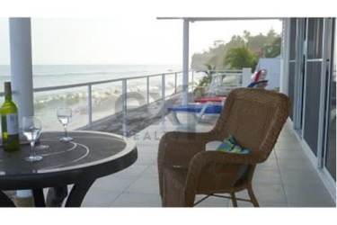 Enjoy exclusive beachfront living at PH Solymar in San Carlos. This impressive 200 m² main residence includes 2 bedrooms, 2.5 baths, an integrated 50 m² private guest apartment, a separate loft with kitchen, bath, private office, plus two fully furnished guest cottages of 50 m² each with kitchens, bathrooms, and expansive seafront terraces. The main terrace and beachside decks offer stunning sunset views, ideal for entertaining. Features include covered parking for 2 cars plus secure driveway space for 2 more, high-speed internet, cable TV, air conditioning throughout, large storage area, spacious indoor/outdoor living areas, and open kitchen. Perfect for a family getaway, retirement home, or investment rental property - move-in ready! Secure oceanfront community with private beach access, 15 mins from Coronado shopping. Excellent price of $575,000. Contact Maria Lopez at Casa Nova Realty Panama for your private viewing.
