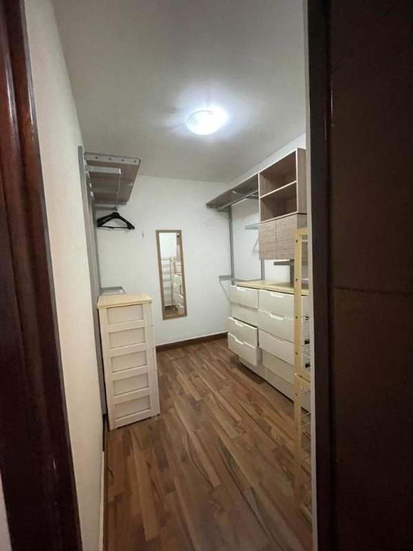 Modern walk-in closet with shelving and mirror in PH Obarrio apartment for sale Panama