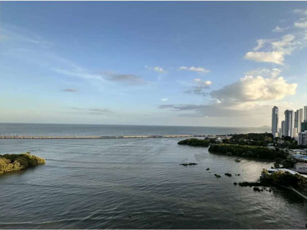 Balcony overlooking the ocean and Panama City skyline in PH Baleares Coco del Mar