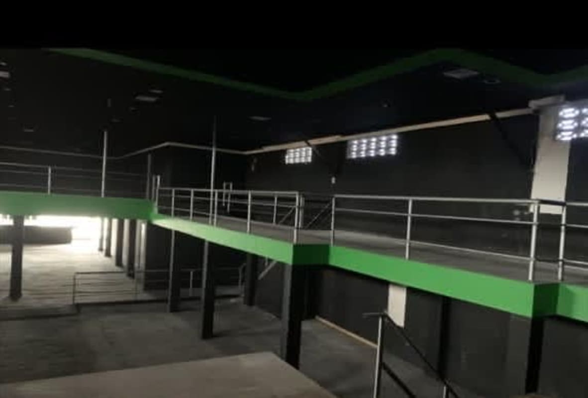 Spacious double-height commercial warehouse interior with mezzanine level and exposed beams in Los Ángeles Panama City