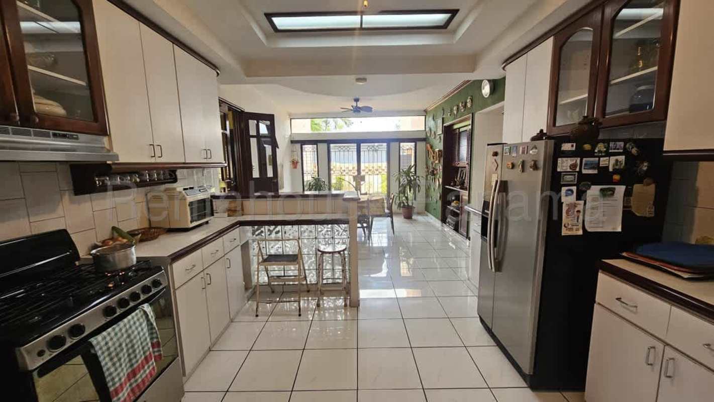 Unique corner residence of approximately 1126 m² constructed on dual levels featuring 6 bedrooms and 6 bathrooms. Flooded with natural light and boasting a versatile distribution, this spacious home includes a welcoming breakfast area, formal living and dining rooms, double-height ceilings, service quarters, storage rooms, and a large outdoor terrace. A dedicated wing with independent entrance houses an office suite with 2 offices, bathrooms, and a kitchenette ideal for a business or private studio. Four parking spaces, private garden, ample work areas. Located near Lung Fung in the Los Angeles neighborhood of Betania, close to El Dorado Mall, universities, Metro stations, and main city avenues. Built circa 1965, ideal opportunity for expansive family living, multi-use residential/office, or investment. Schedule your private visit today with Casa Nova Realty Panama.