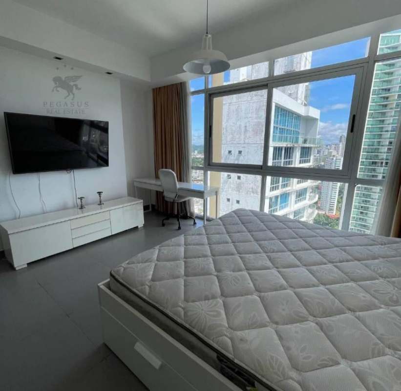 Modern fully furnished studio apartment of 45 m² in PH Colores de Bella Vista. Features open layout maximizing space with kitchenette, granite countertops, modern appliances, spacious area with large windows offering city views, AC, and a separate bathroom. Includes 1 parking space. Located near Avenida Balboa, Cinta Costera, shopping, dining and metro. Building amenities include pool, gym, rooftop lounge, event room, children's area, and 24-hour security. Ideal for singles or couples seeking convenience and vibrant city living. Monthly rent $900. Available immediately. Contact Maria Lopez at Casa Nova Realty Panama for a private viewing.