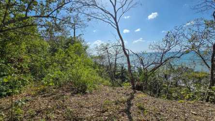 Oceanfront lot with trees Pacific coastal setting clear sky Horcones Cambutal Panama