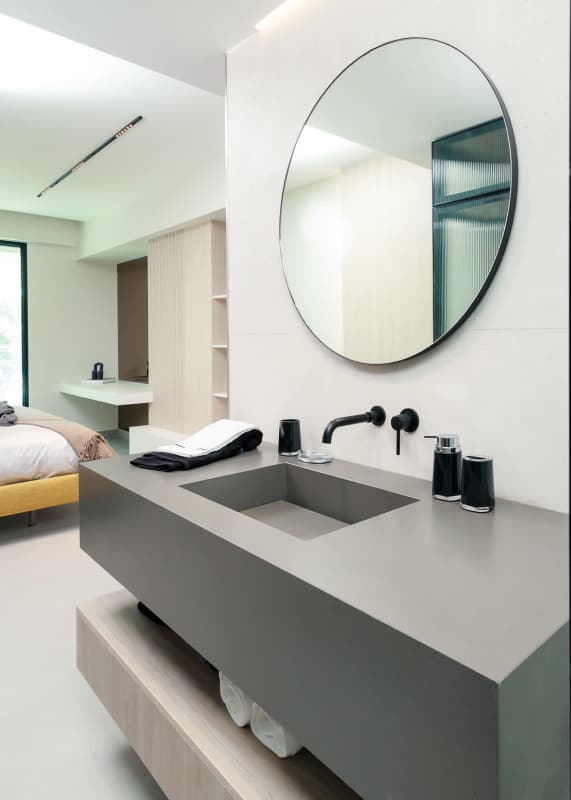 Minimalist vanity with backlit mirror in Uptown Marbella apartment Panama