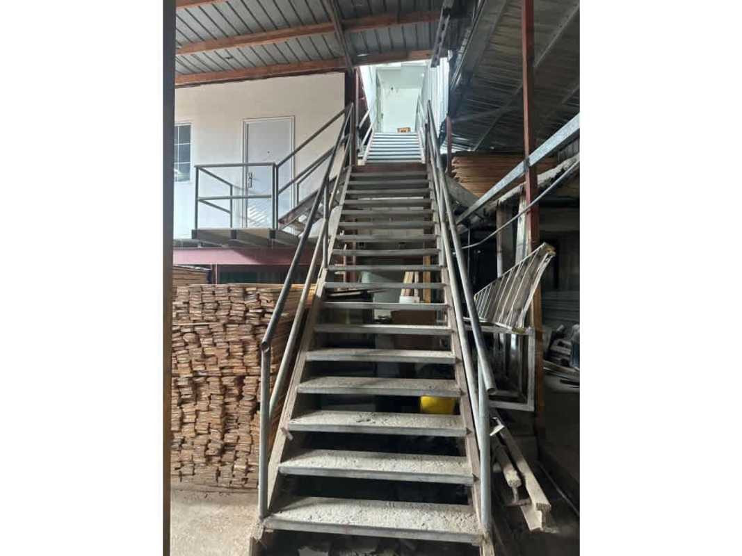 Interior space with steel staircase, mezzanine, storage materials in warehouse at Llano Bonito Panama City